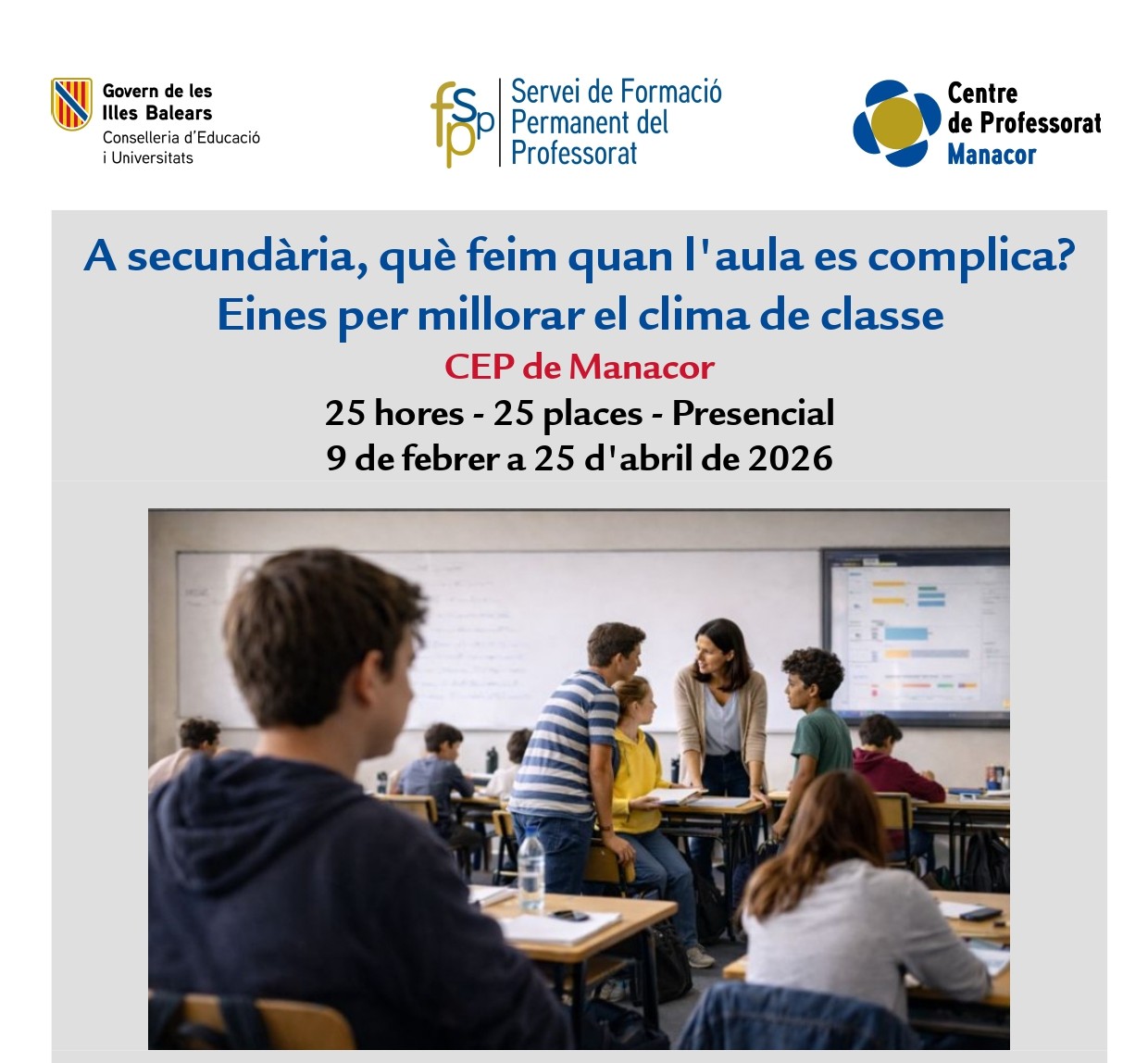 2956 A secundària, què feim quan l'aula es complica? Eines per millorar el clima de classe